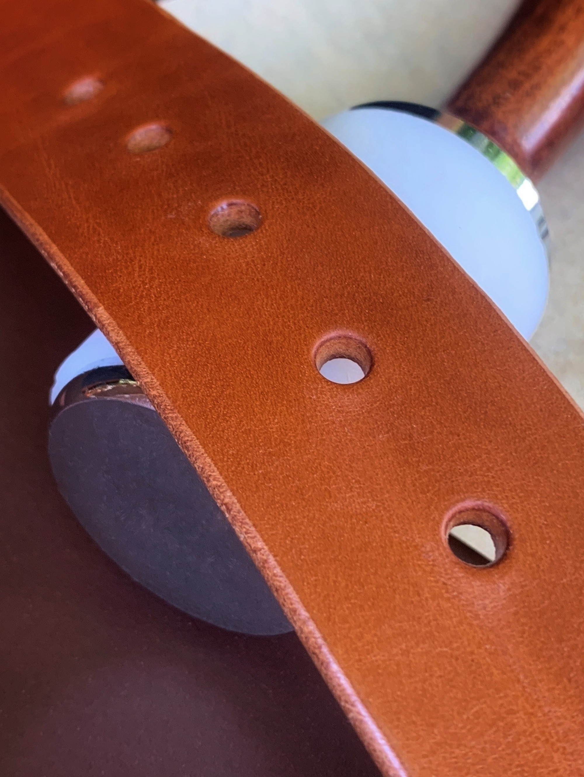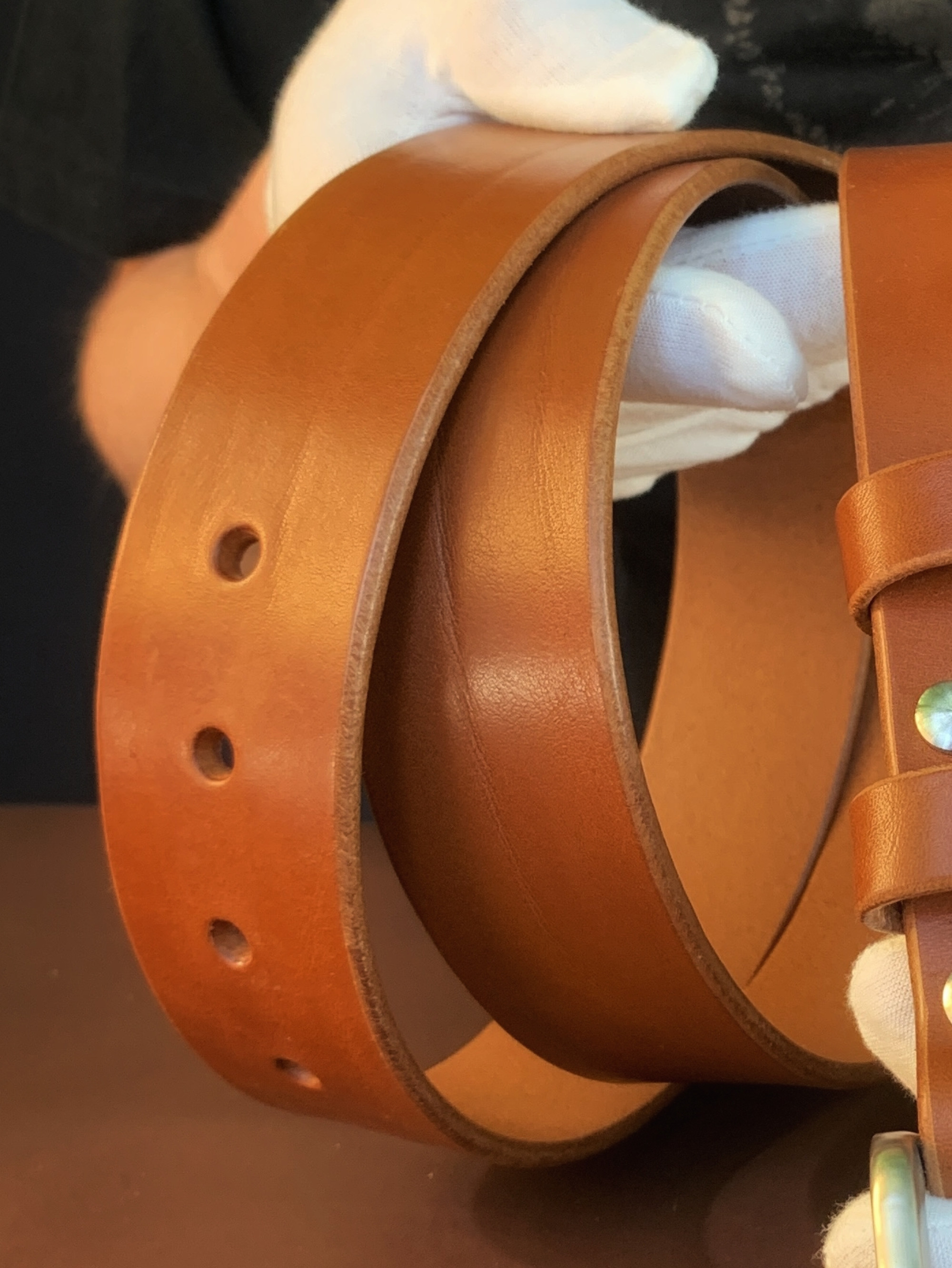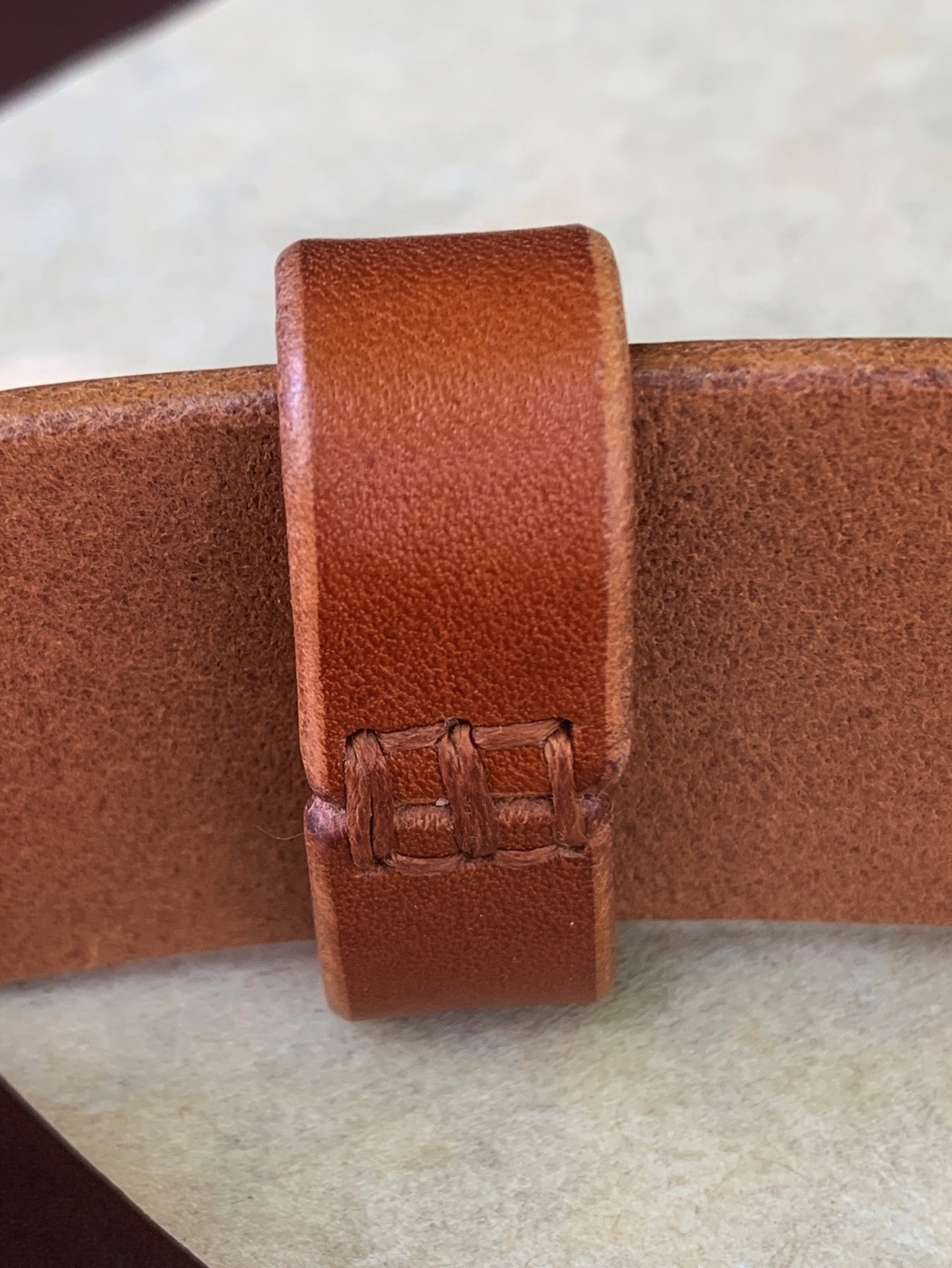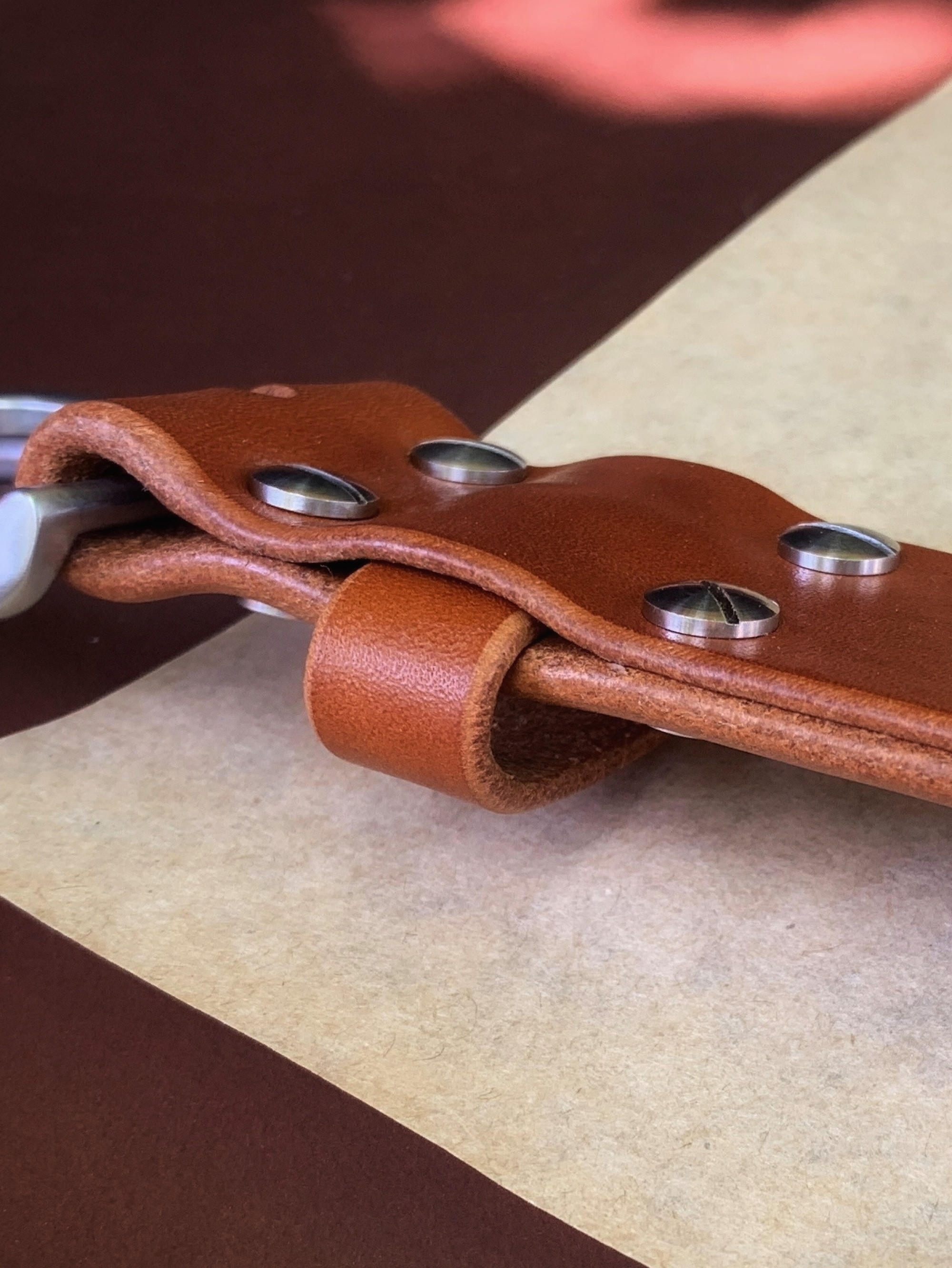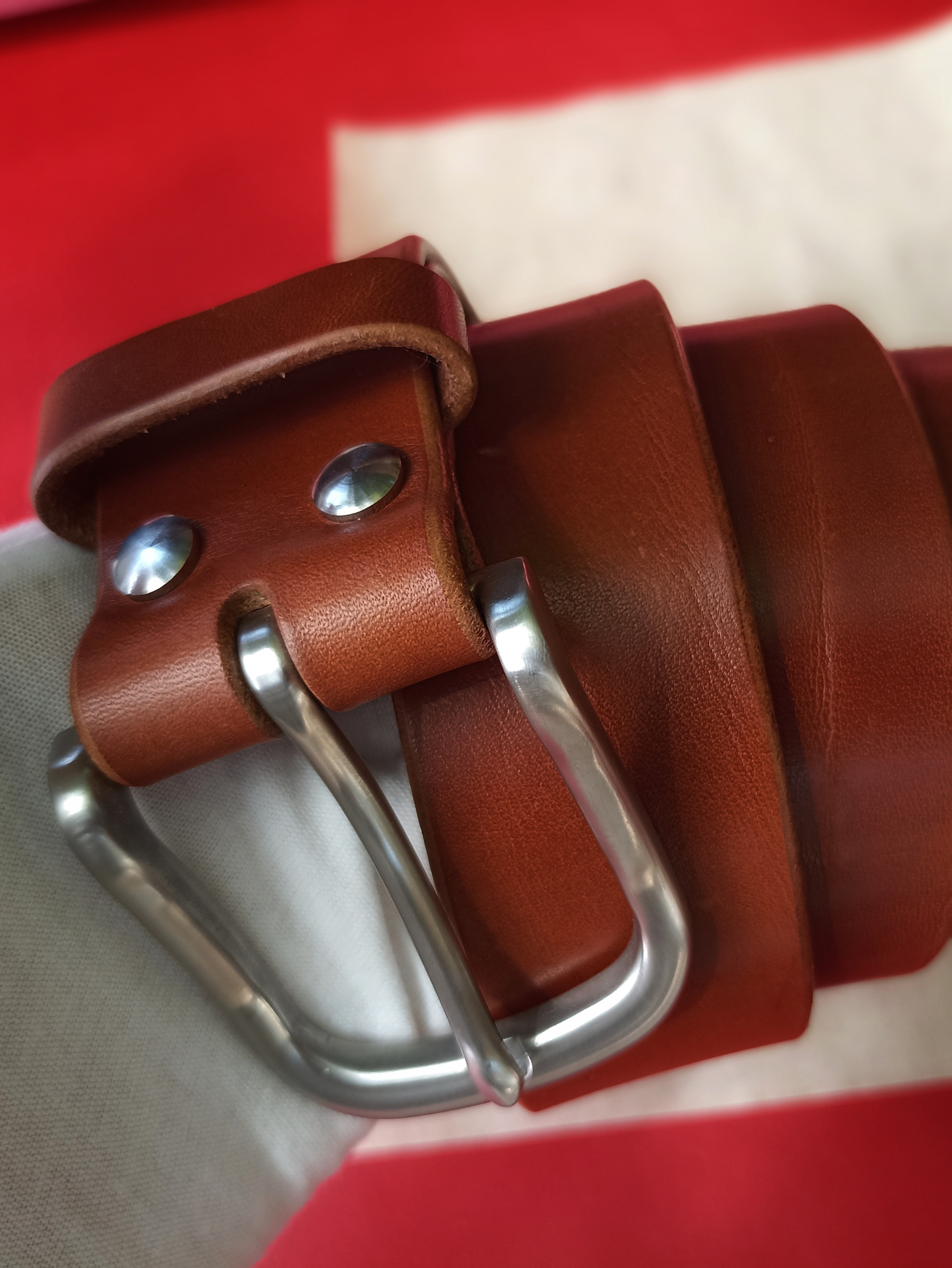 Пряжка и винты выполнены из нержавеющей стали, оттенок матовый. Винты массивные, линзообразные, в данной модели их 4. Подпряжный «язычок» для компактности и пикантности чуть тоньше основной полосы ремня.